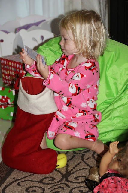 Whitney quickly lost interest in her stocking and went for the kitchen set.